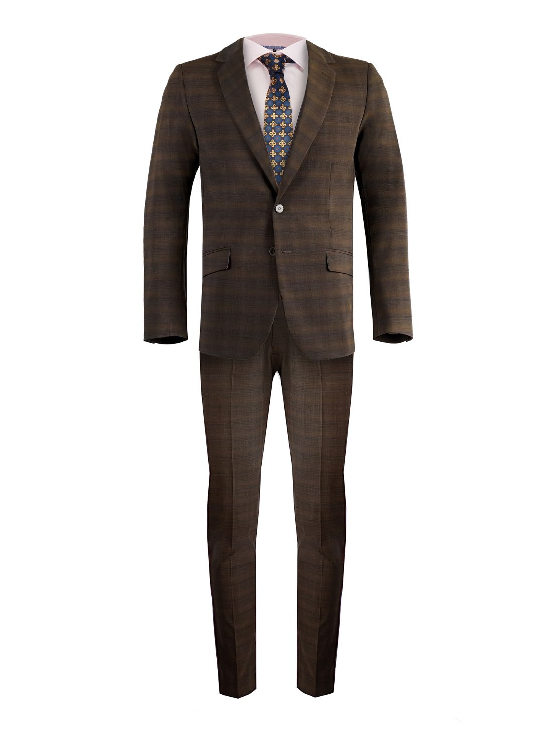Elegancki brązowy garnitur w kratę GA01 kolor 088